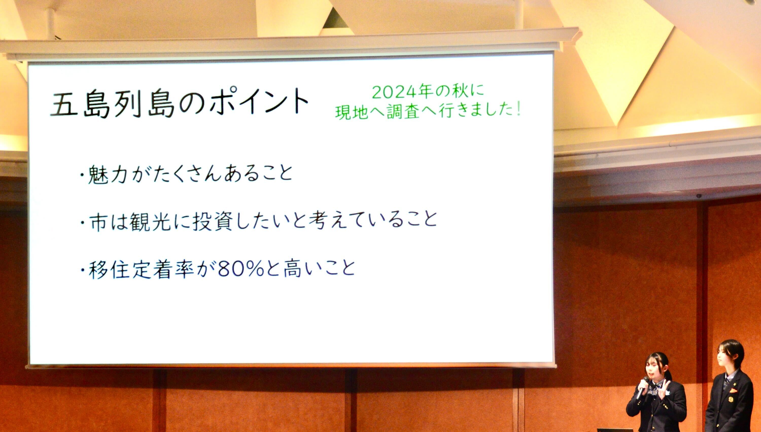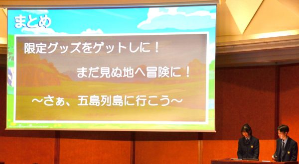本校では修学旅行で訪れた五島列島について、自分たちの発見や地域の方の声を参考に探究活動を行いました。