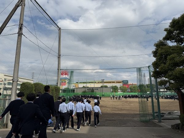 校内放送が流れると、生徒たちは素早く避難経路を確認し、落ち着いた様子でグラウンドへ移動を開始しました。