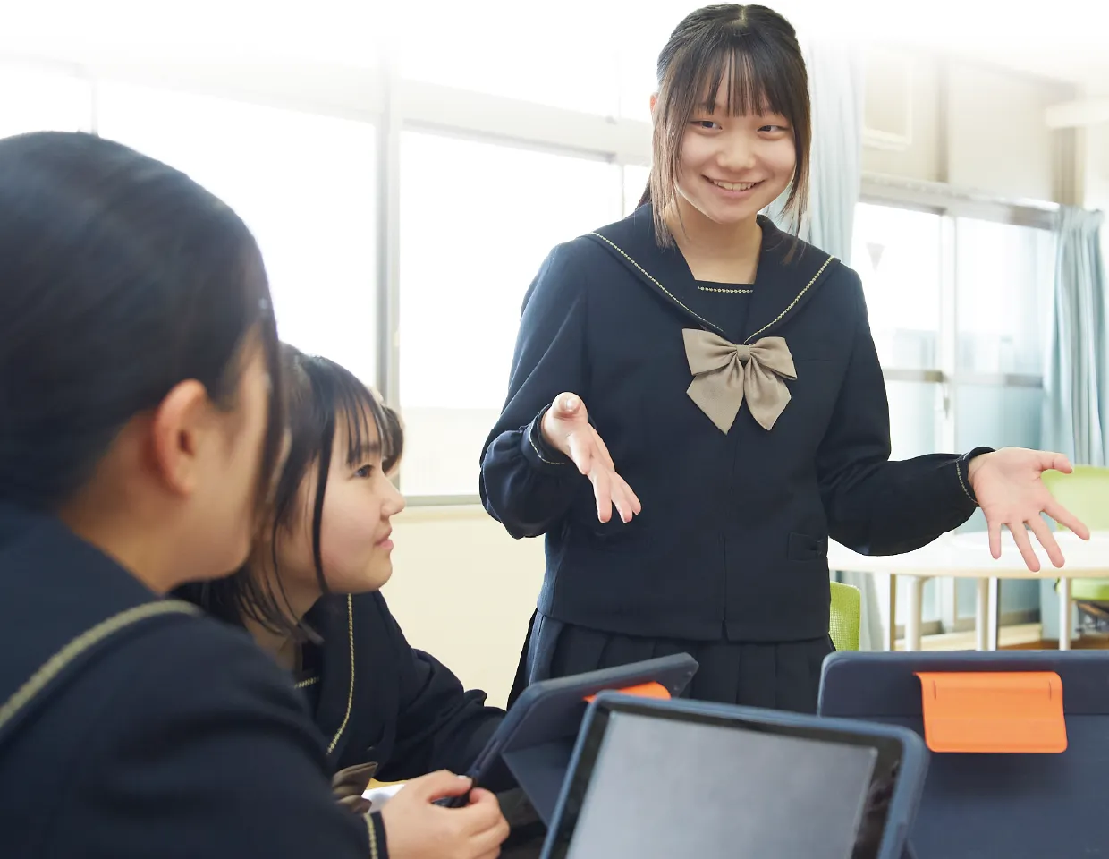 本校には、教師が話し、黒板に書いて終わるだけの授業はありません。どの教科でも生徒がワクワク学べる授業づくりを行うために工夫しているからです。例えば理科の授業では「地球に住めなくなったらどの星に移住するか」、国語なら「災害をテーマに小説を書いてみよう」など課題解決型の学習を織り込み、生徒は太陽系の惑星や東日本大震災の情報などを夢中になって調べていきます。「やらされ感」を無くす仕掛けを教師が当たり前のように授業に取り入れています。