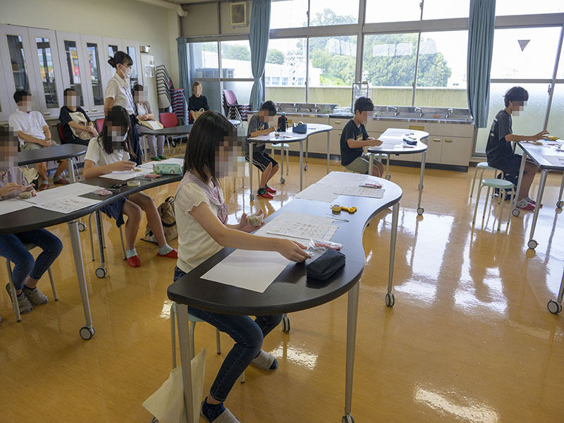 理科では、チリメンジャコを使って生物の分類をして生物多様性について知る授業をしていました。保護者の方と夢中で分類をしているご家庭もありました。