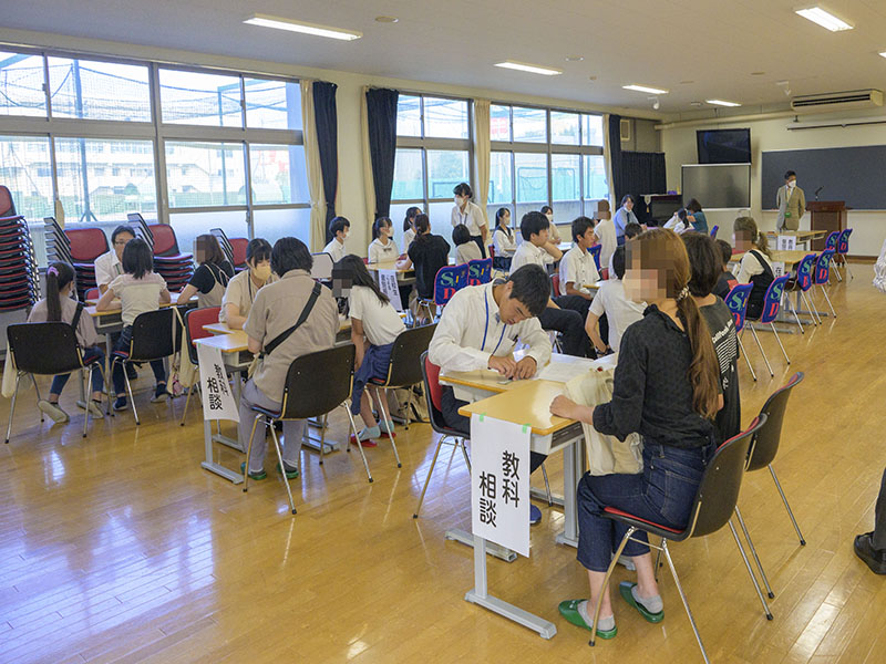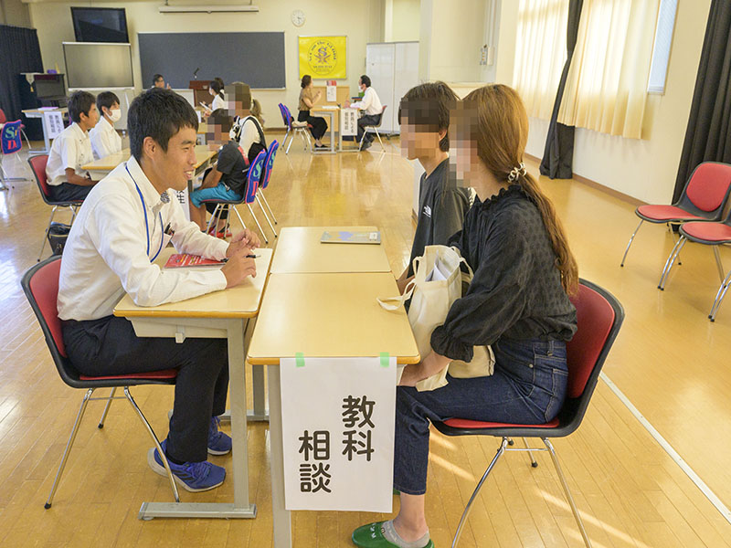 相談会場では、引き続き本校教員による個別相談・教科相談が実施されたほか、在校生による個別相談も実施されました。特に、今年入学してきた1年生や学校の中堅となっている2年生による相談は、受験生だけでなく保護者の方にも人気となっていました。