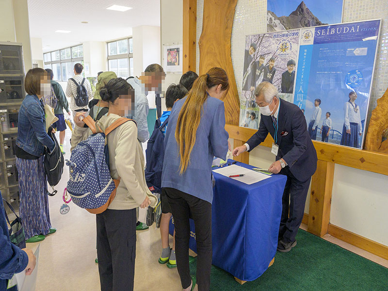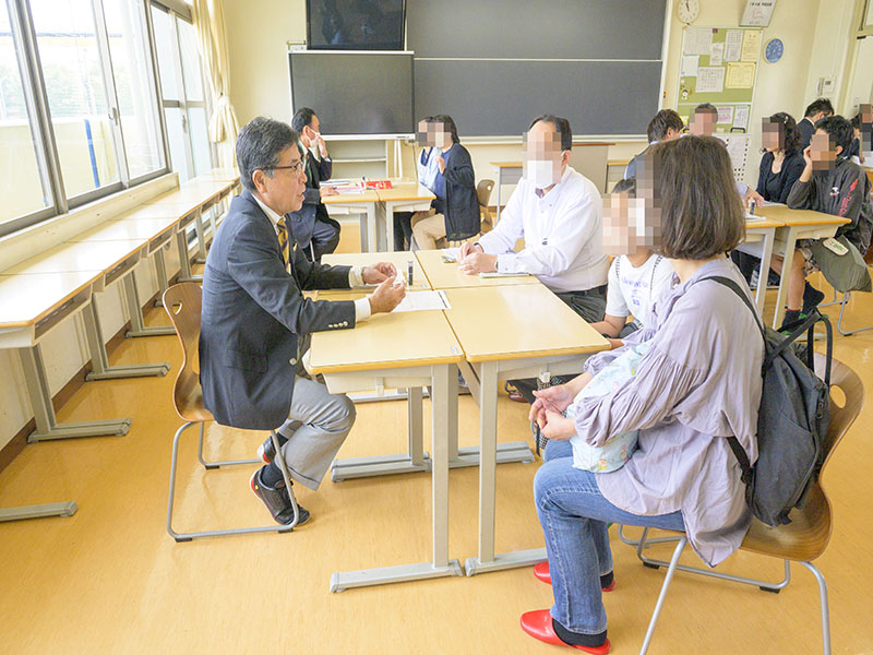個別相談も満席となり、行列ができるほど多くの受験生・保護者の方が相談されました。受験に関することを中心に、学校の様子や英語についての話などに本校教諭が親身になって説明をしていました。