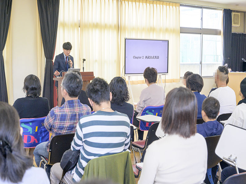広報担当竹下より、教育コンセプトと募集要項についての説明がありました。教育コンセプトでは、エンゲージメントの高い授業に重きをおいた授業の実践や英語教育での取り組みについての話がありました。特に、今年度から本格的に実施しているオンライン英会話についても実際の動画を含めてわかりやすく説明がありました。