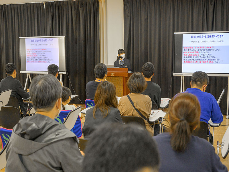 また、中学生は12月に実施予定の英語暗唱大会の題材を来校者の前で披露し、大きな喝采を受けていました。