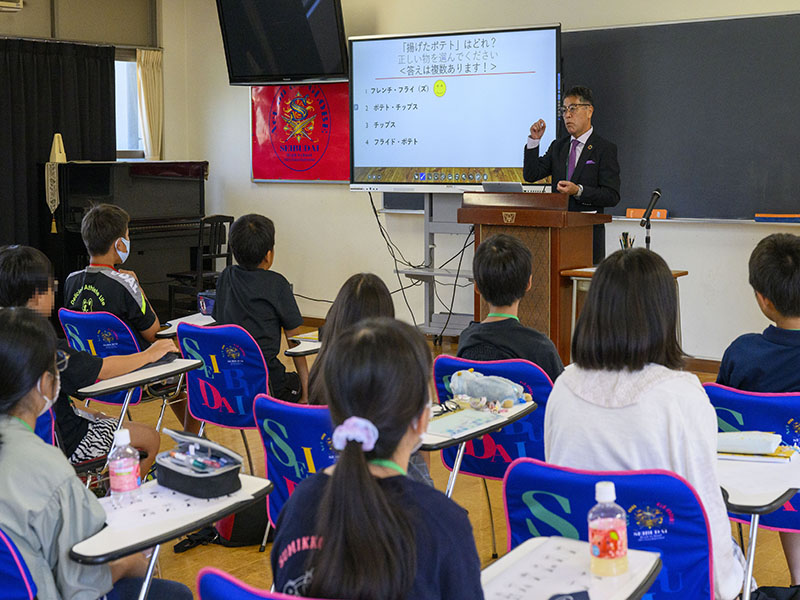 最終日には給食試食会もあり、カレーと鶏の唐揚げとデザートが出ました。美味しそうに食べている風景が印象的でおかわりをしている姿も多く見られました。