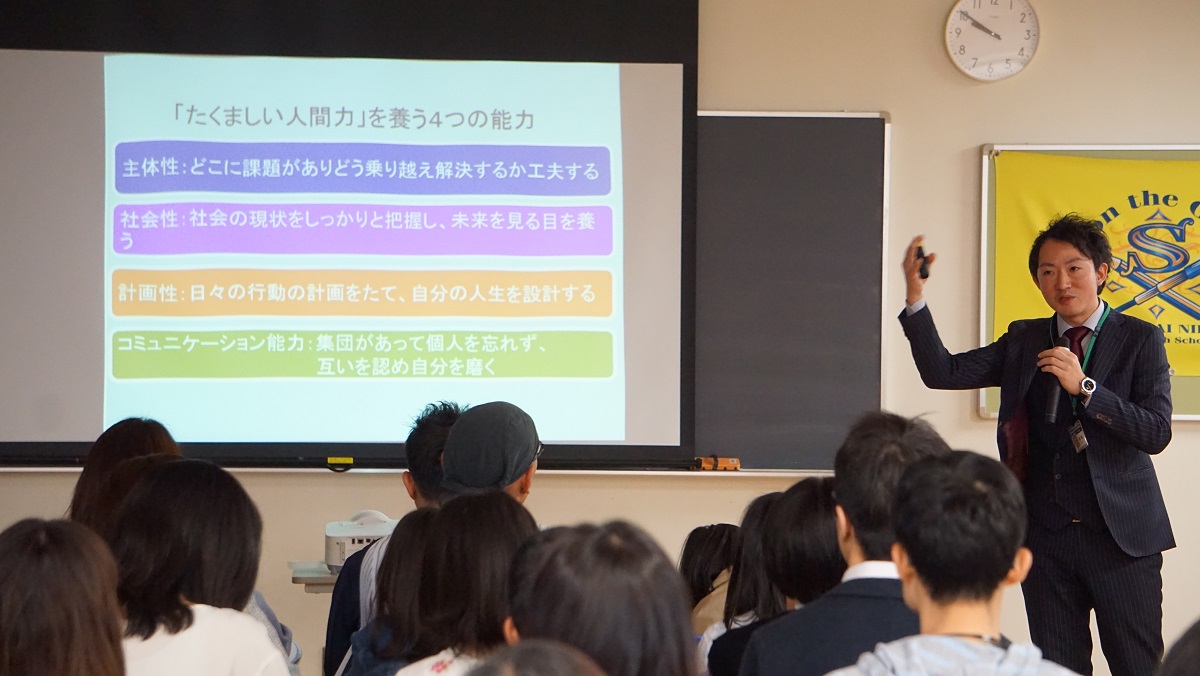 広報部主任高味からは、本校教育コンセプトのほか、入試結果の報告などをお伝えしました。