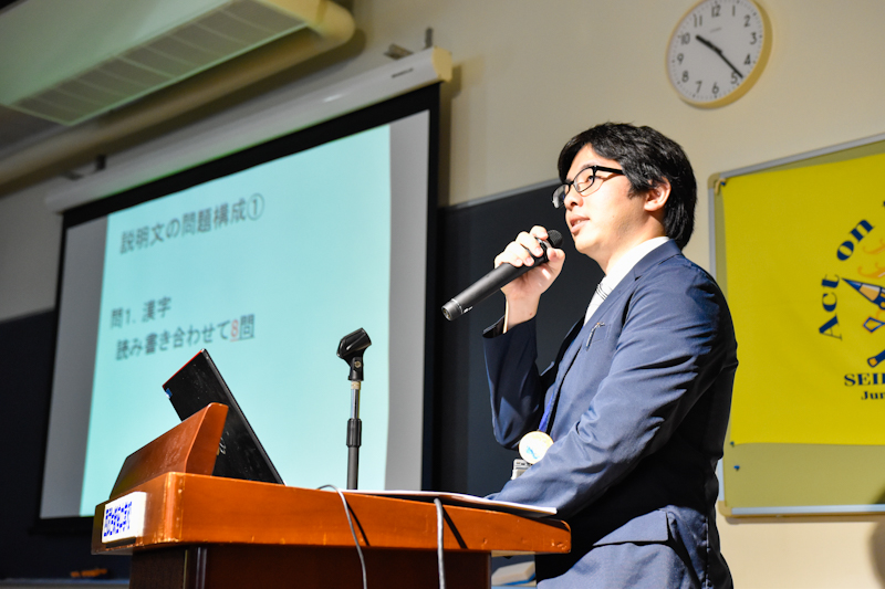 国語科教諭板倉による入試問題解説の様子