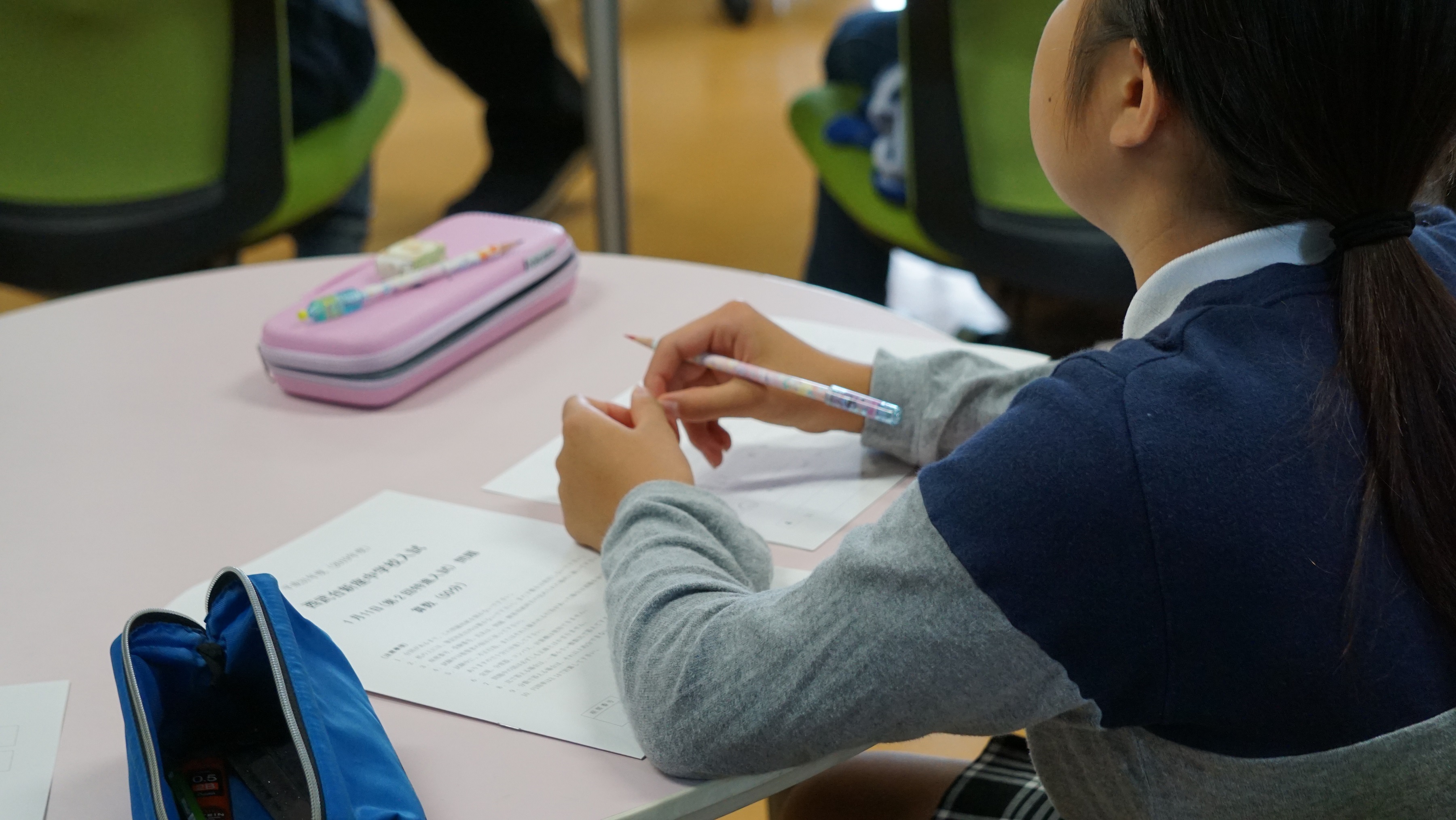 4階の特別教室SACLAでは、児童を対象に、小澤教諭が算数の入試問題の体験と解説会を行いました。みなさん、一生懸命に取り組んでくれました。
