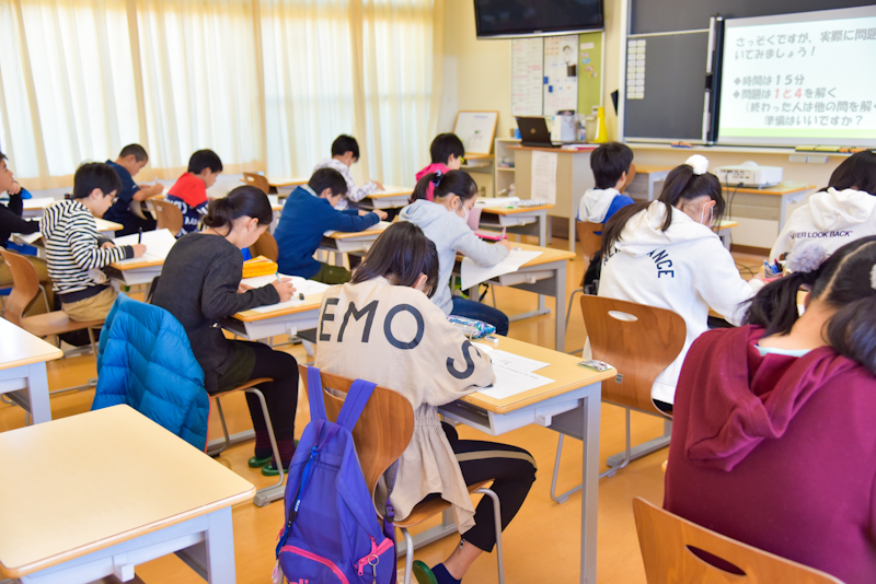 【3F 2-A,3-B教室 小学生対象 入試問題解説会(理科・社会の様子】