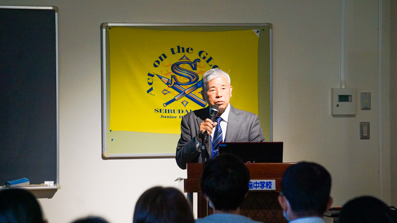 理科教諭渡辺、社会科教諭河野より、本校での教育内容を交えながら、入試問題の解説を行いました。