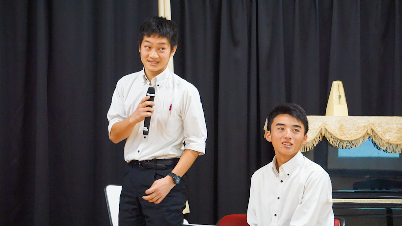 最後に、中学3年生2名とALTのモーゼス、英語科教諭仲丸による西武台式英語の実践をご覧いただきました、