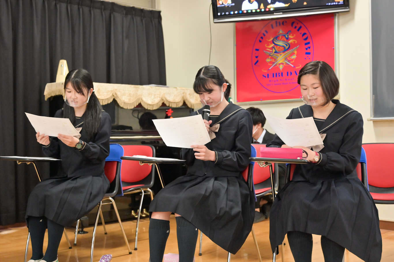 また、本校教員と中学2年生による、西武台式英語の実践行いました。一つの英文についてディクテーション、オーバーラップ、シャドウイングを行い、その様子を保護者の皆様にご覧いただきました。