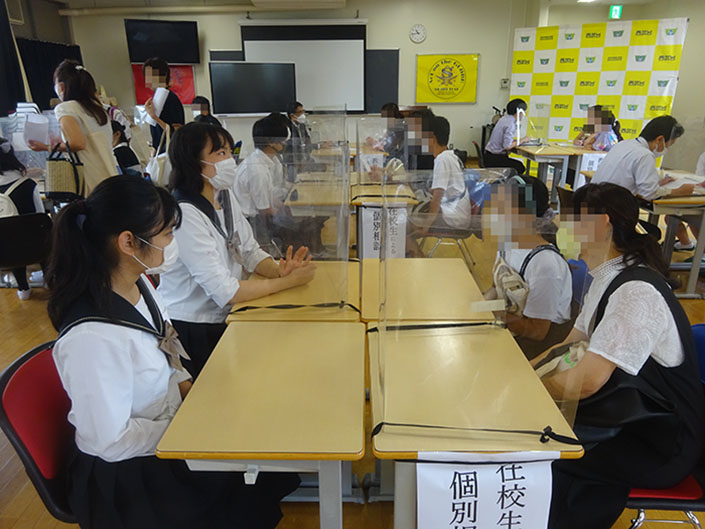 また、並行して個別相談及び教科相談も行いました。さらに本校の生徒が相談役となり、受験生や保護者の方に学校生活について説明をしており、和やかな相談会場となっていました。