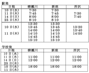 平成30年度 入学試験時のスクールバス運行は下記の通りです。