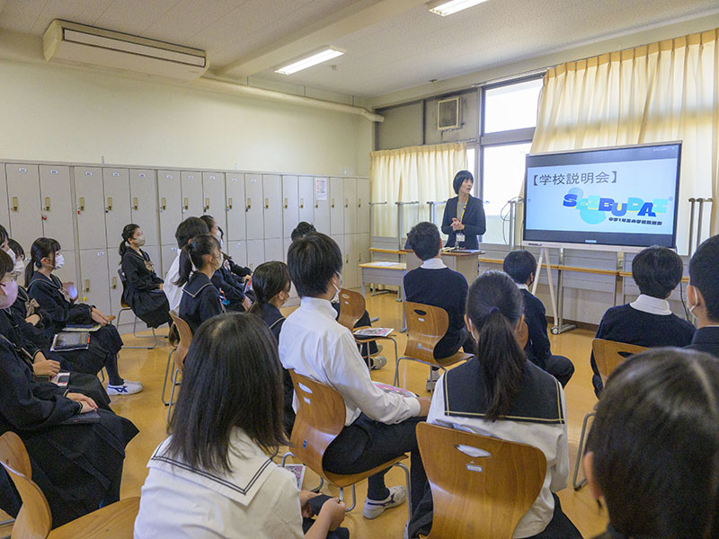 11月1日(水)に、本校ではスタディフェスタが実施されました。これは、各学年が総合の時間で取り組んできた学習内容について、保護者や他の学年の生徒を招いて学習成果を発表するイベントとなっており、今年度が初の取り組みとなりました。