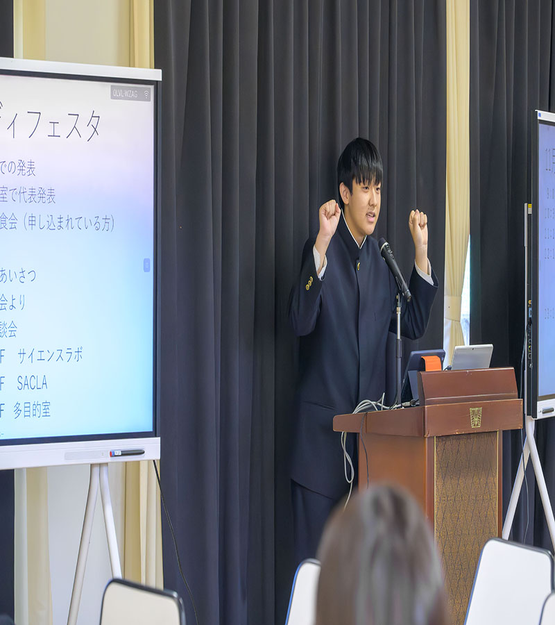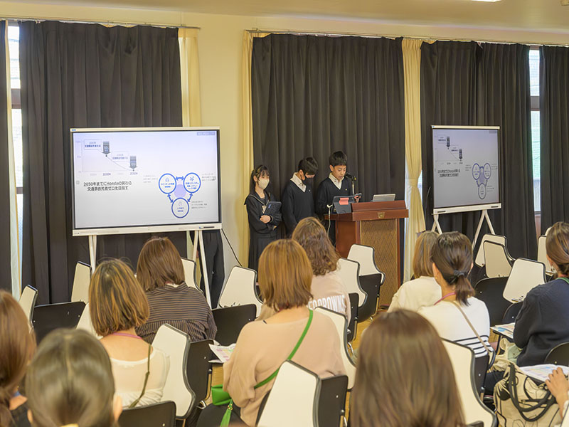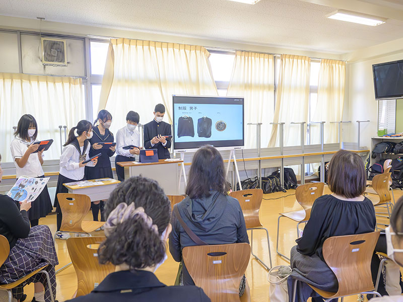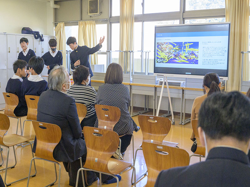最後に、2年生と3年生の学年代表者がプレゼンテーションを保護者の前で実施していました。代表者らしく、調べている内容や企画がとても深く掘り下げられており、頷きながら聞いている保護者の方も多くいました。