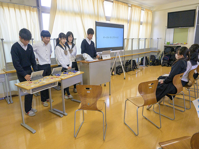 3年生は【オーストラリアの調べ学習】として、オーストラリアに関する調べ学習のプレゼンテーションを実施していました。3年生の企画は、プレゼンテーションだけでなく、実際にオーストラリアで人気の遊びを作成したり、人気のお菓子を作って試食をしたりなど、観覧者が体験する活動がとても多く、盛り上がっている場面も多くありました。オーストラリアでどのようなことを学んでくるのか、今からとても楽しみです。
