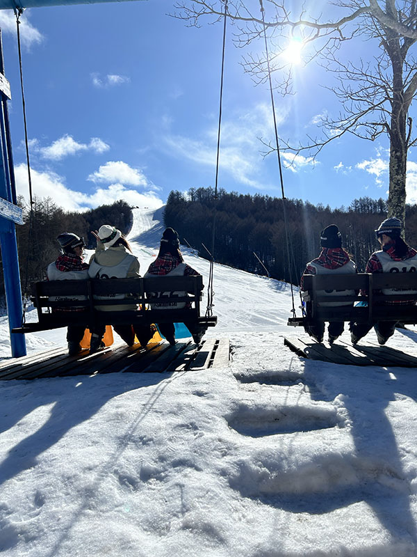 2日目はリフトに乗って山を登り、本格的にスキーを始めていました。