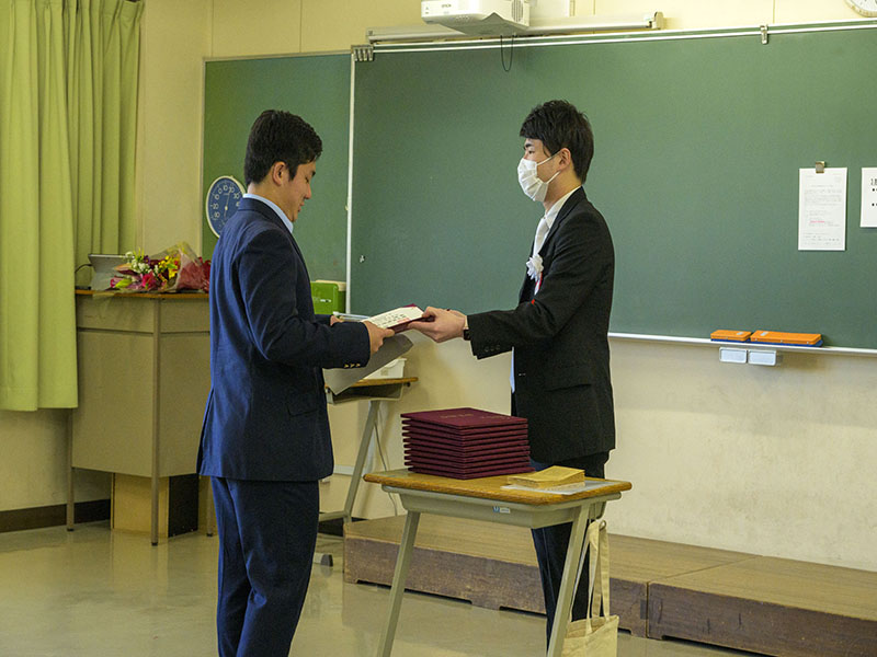 各クラスでは、全員に手渡しで卒業証書を渡し、1人1人との思い出・激励の言葉をかけている姿がとても印象的でした。