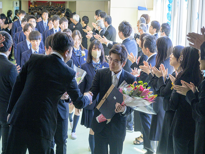 多くの先生に拍手で盛大に見送られ、卒業生たちは最後のHRを各クラスで実施しました。