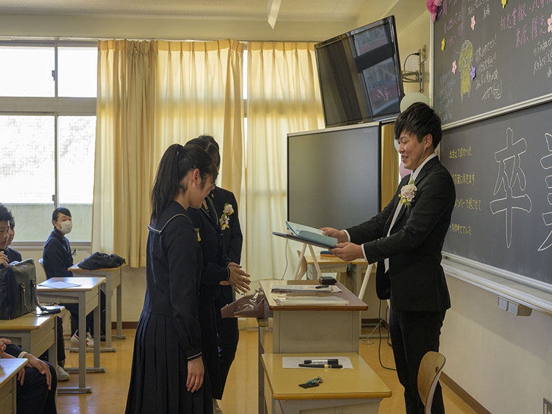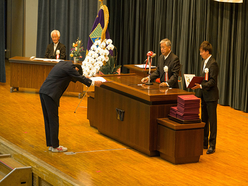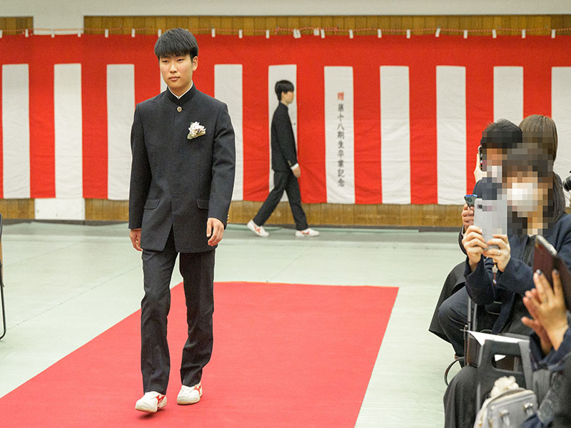卒業証書が授与されるときは1人1人が大きな声で呼名されると返事をしていました。とても立派で成長した姿が見られました。