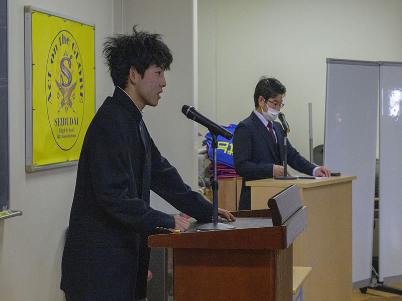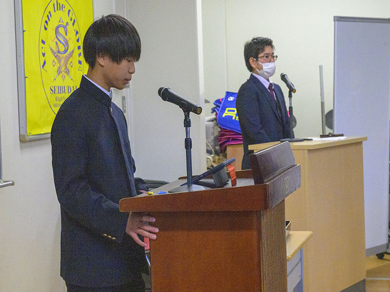 また、西武台新座中学校の恒例行事となっている2学期の感想発表も実施されました。学業だけでなく、生活面や部活面などで多くの成長を遂げることができた2学期の振り返りを1人1人が丁寧に行っていました。