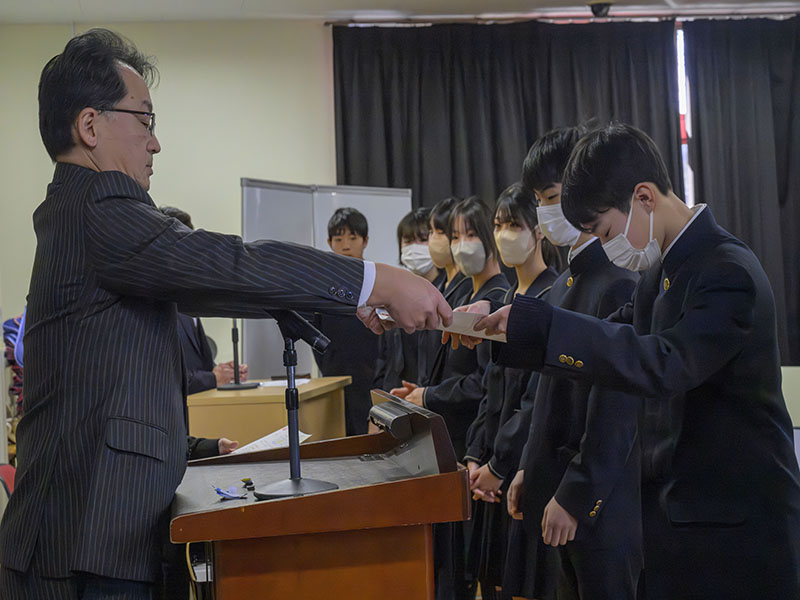 12/20(金)、2学期の終業式が実施されました。終業式では、成績優秀賞や英語検定(3級・凖2級等)に合格した多くの生徒が表彰されました。