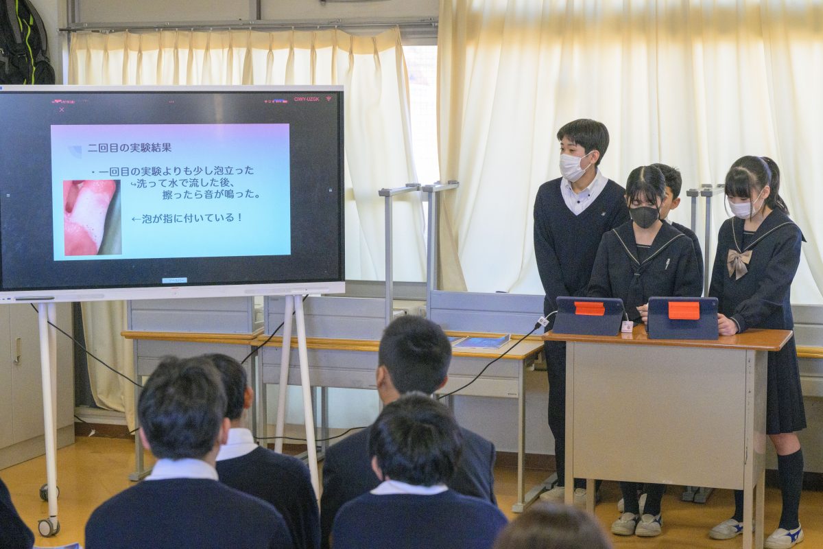 各班とても面白い題材を用いて研究をしている姿が印象的でした。中には実際にスーパーに行って協力を募っている班がいたり、作成したものを幼稚園などで発表を模索している班もありました。