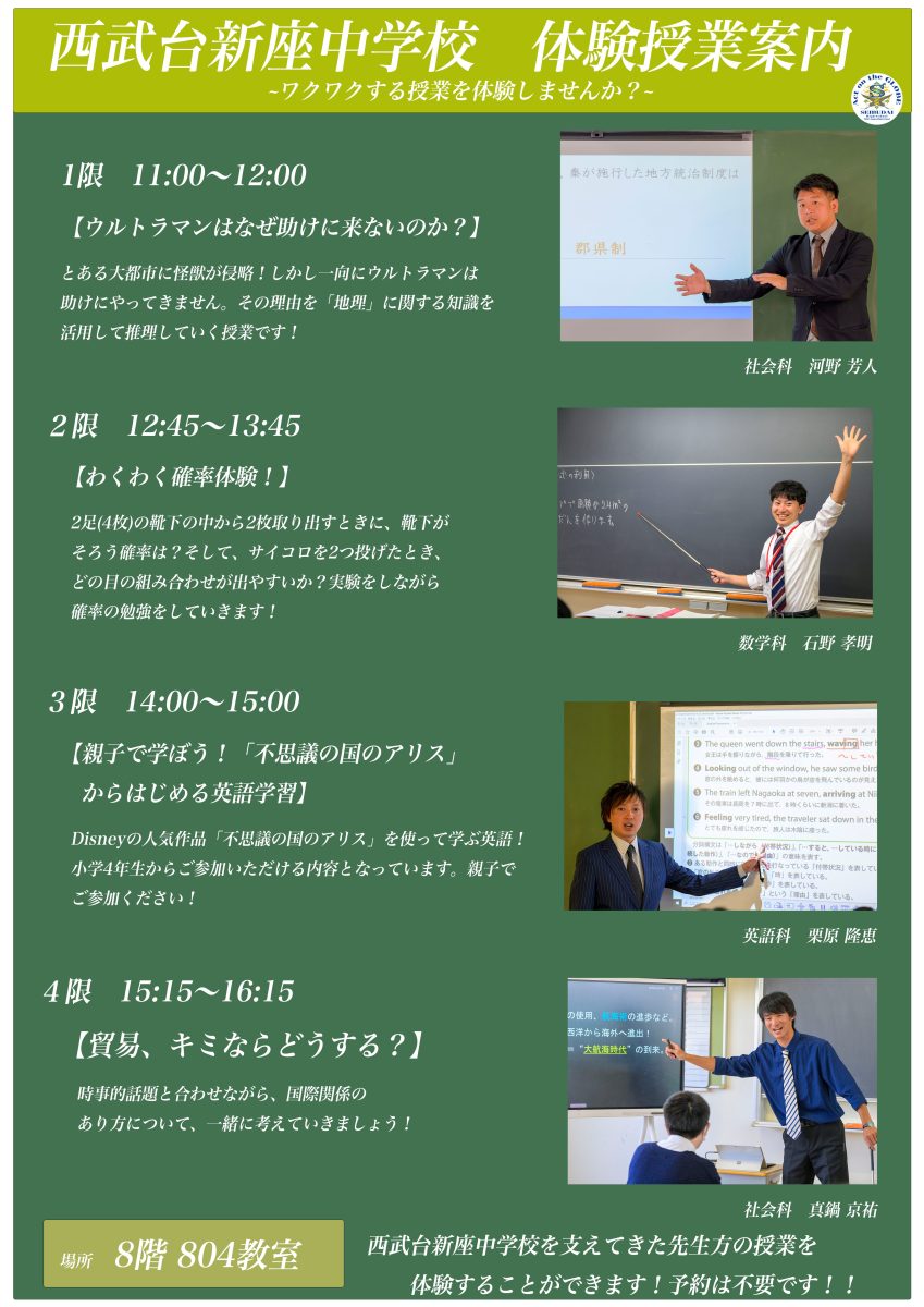 明日の私学フェアで実施される体験授業についての案内です!!予約は不要ですので是非ご参加ください!
