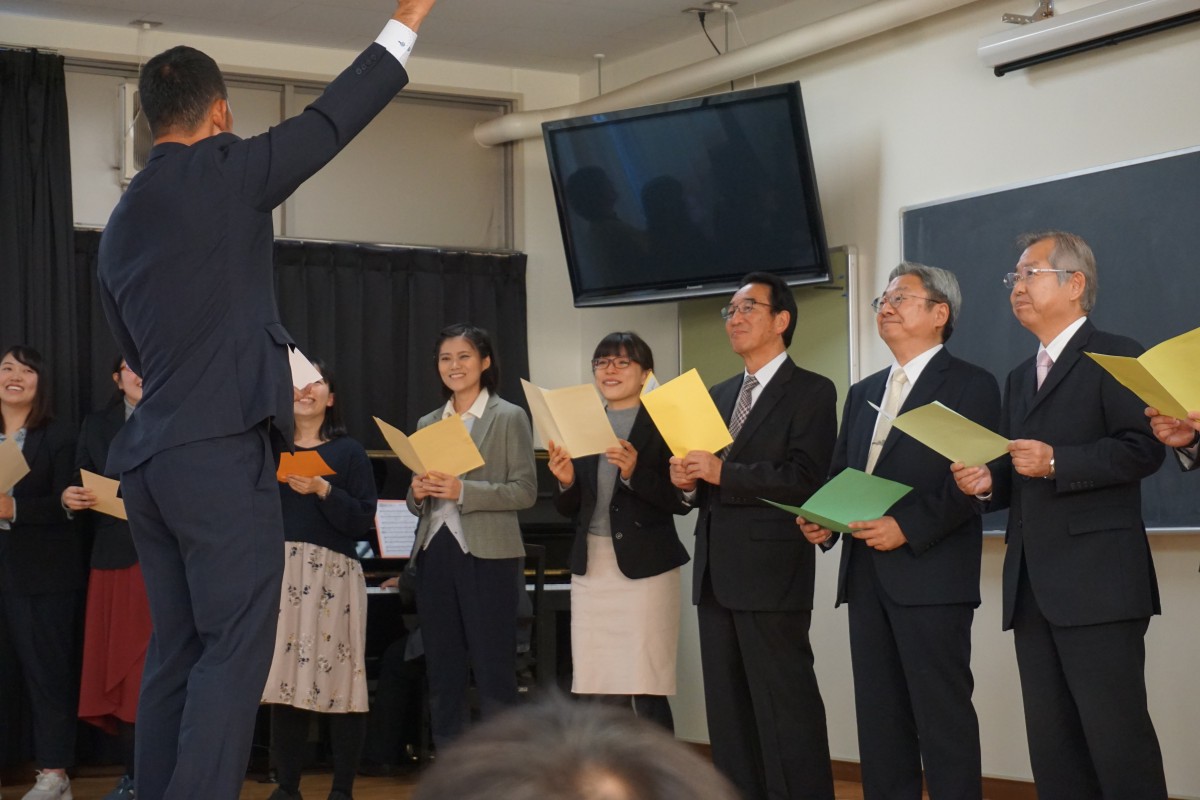 数少ない練習回数でしたが、今年も生徒達の頑張りに応えるため、教員も一丸となり「上を向いて歩こう」を歌いました。