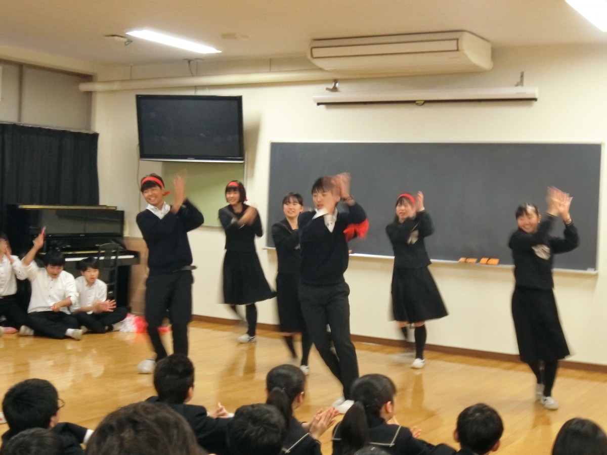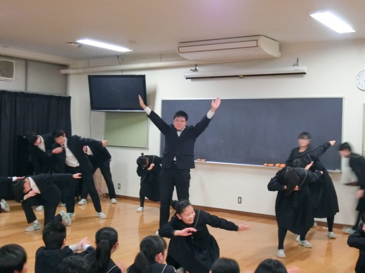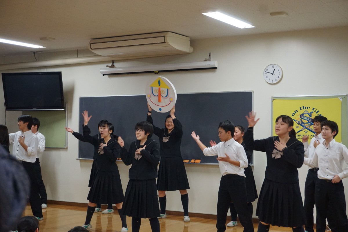 中学最後の合唱祭(総合表現活動)!毎年恒例のダンスで今年も5期生A組らしく踊り切りました。3年間の集大成、みんな良い笑顔でした。