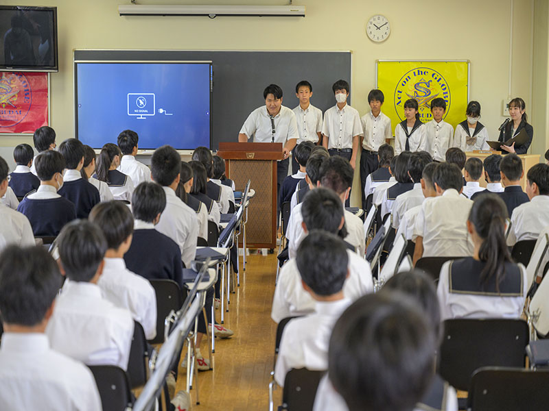 中学校では、全校朝礼後にも全体の連絡事項が実施されています。