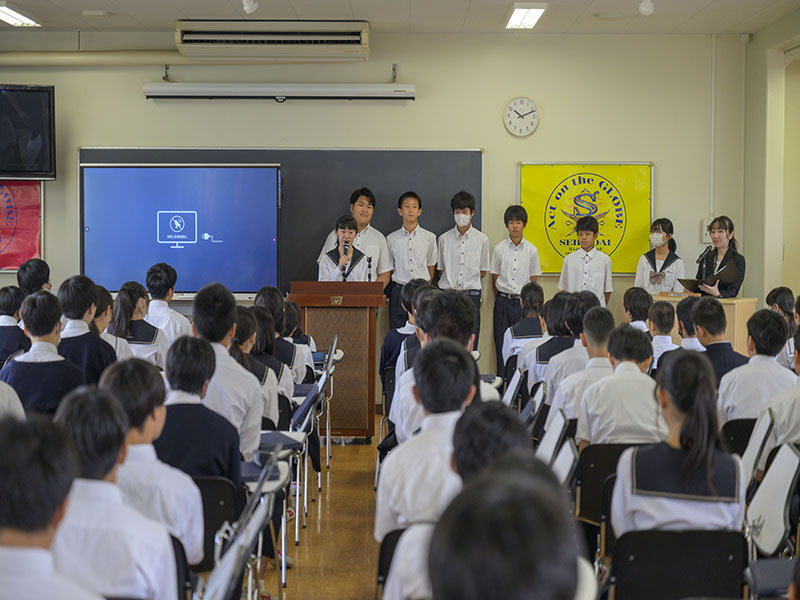 6月14日に全校朝礼が実施されました。今年度より全校朝礼は高校と同じ環境で実施されることになりました。詳細は高校のブログをご覧ください。