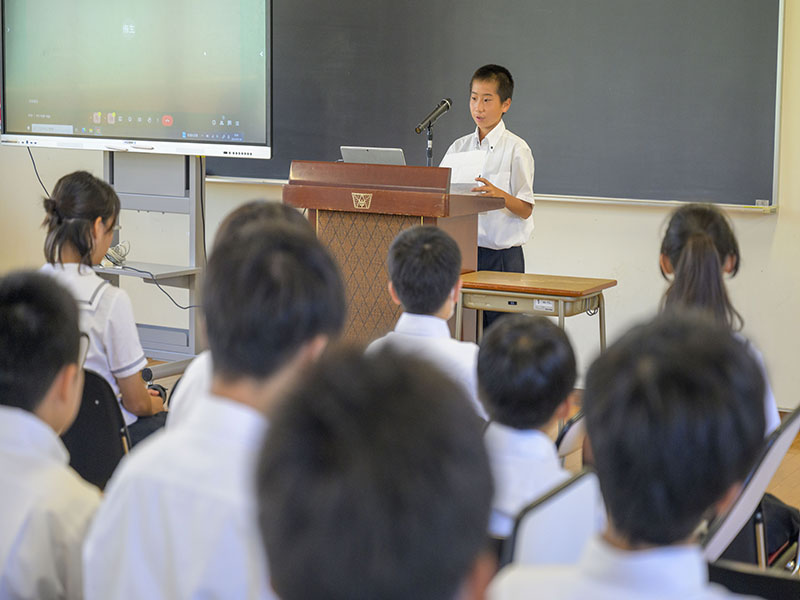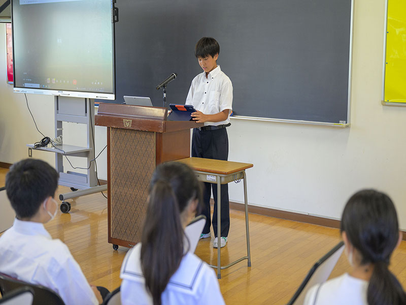 1学期の感想発表では、1年生はオリエンテーション研修の話、2年生はブリティッシュヒルズや学校生活の話、3年生はテストの話など、様々な面から発表をしていました。みんなが1学期たくさんの経験をしていたように感じています。