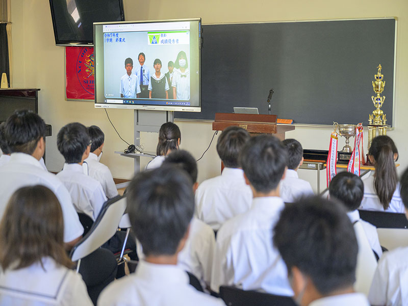 本日7月19日、本校では1学期の終業式が実施されました。体育館が工事をしているため、今回はオンラインでの終業式となりました。