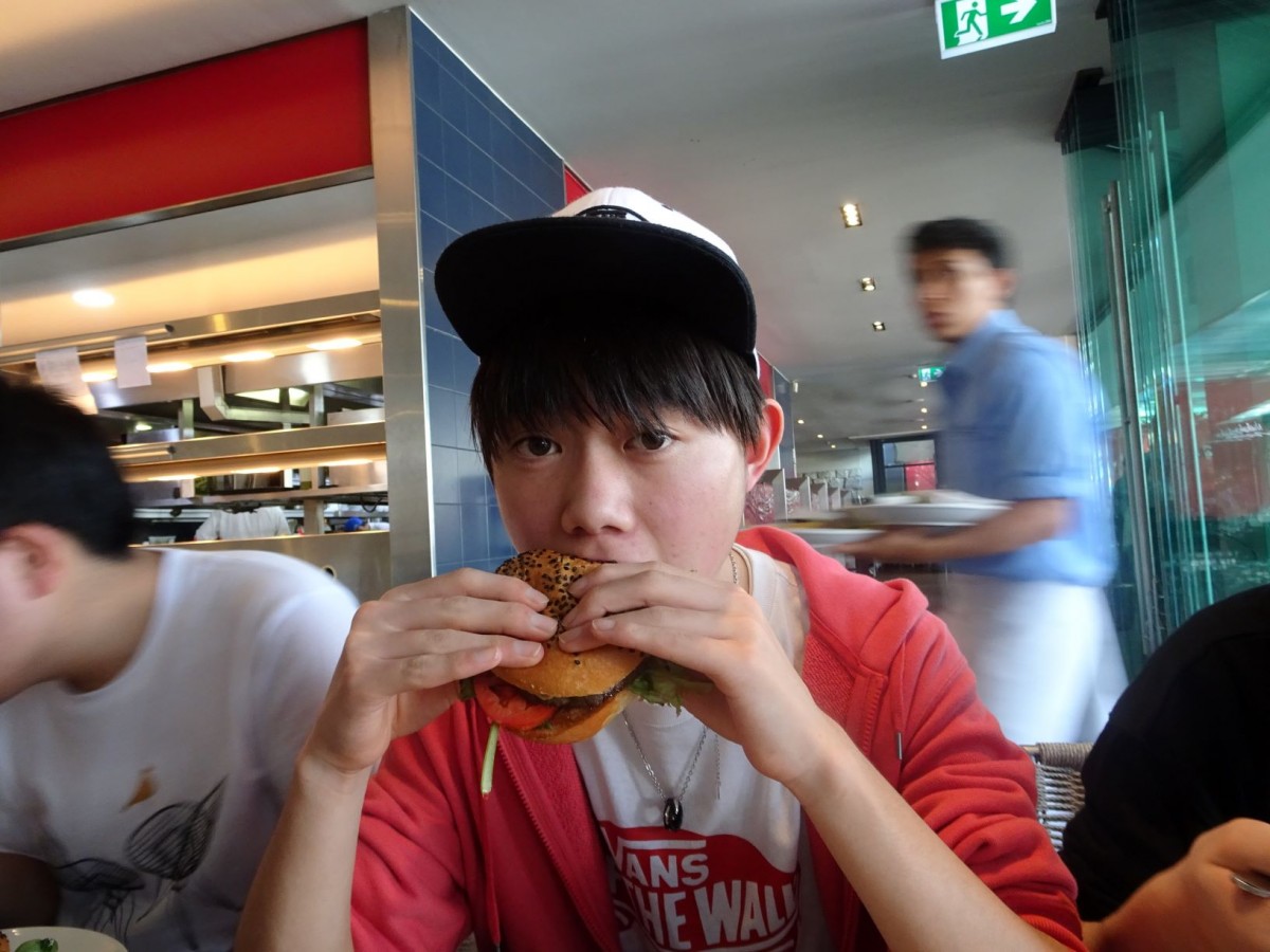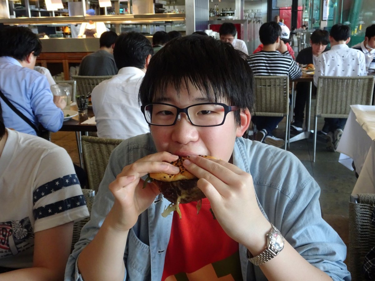昼食は毎年恒例となっている特大ハンバーガーでした。先輩たちから話を聞いて、楽しみにしていた生徒たちは無我夢中でハンバーガーにかぶりついていました。大きいものの、肉がしっかりしており、美味しく、ほとんどの生徒が完食していました。