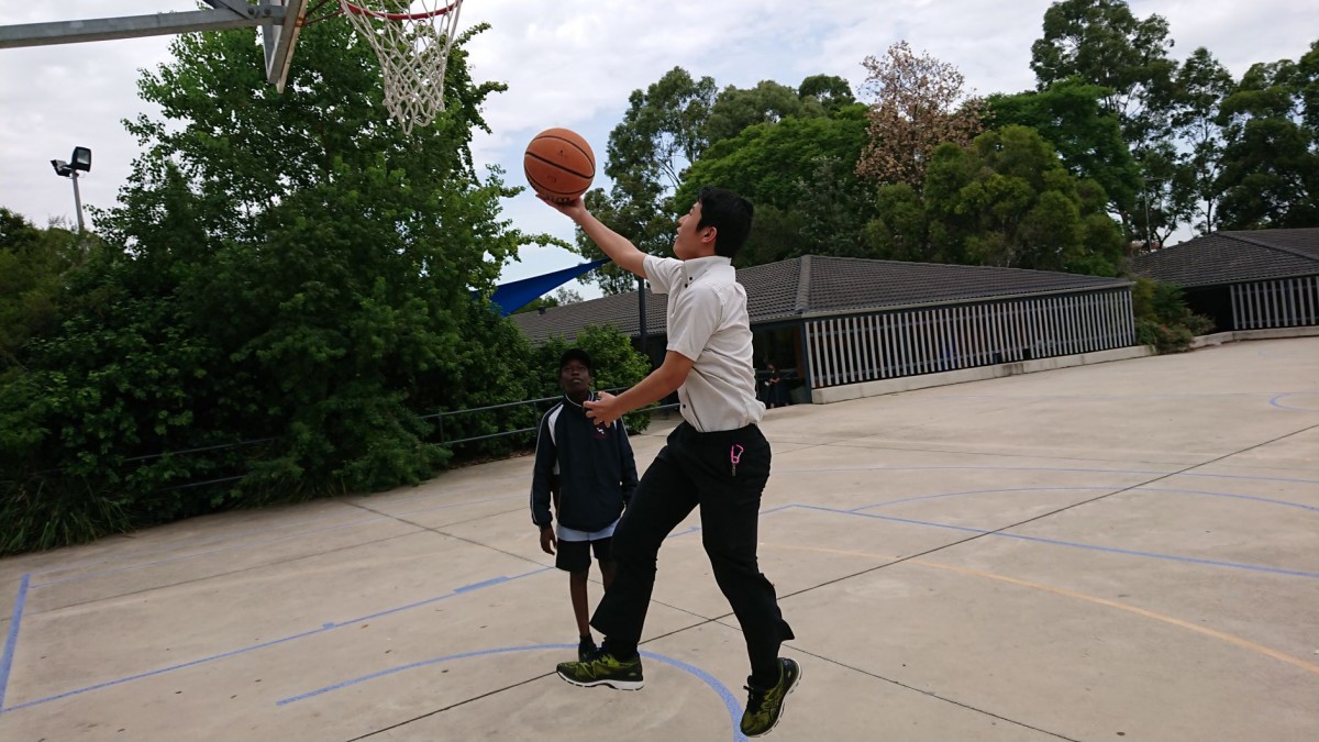 休み時間は授業と授業の間に加え、モーニングティーの時間とランチタイムがあります。それぞれ軽食を食べたり、スポーツをしたりと過ごし方は様々です。初めは見ているだけだった生徒たちも、少しずつバスケットやサッカーに参加するようになり、交流が深まってきていることを実感します。