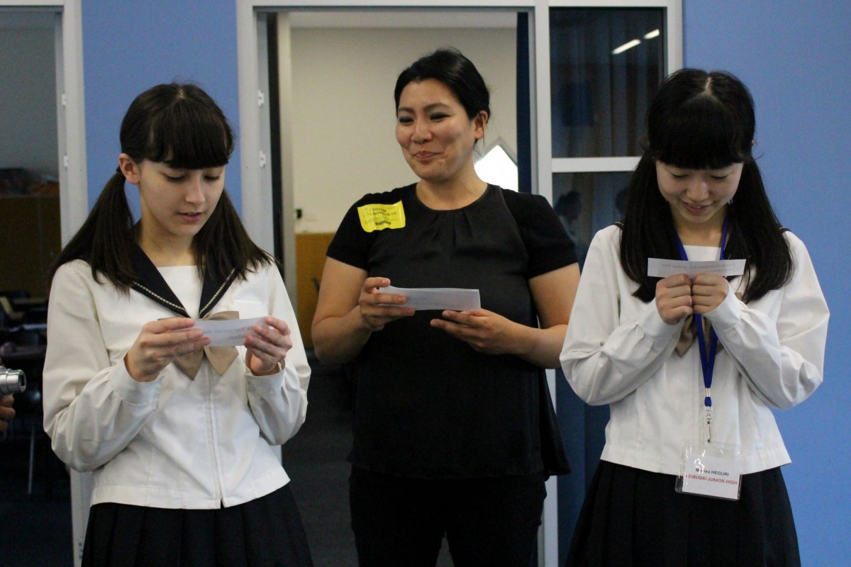 また、ティンデール校では日本語の授業も開講されています。本校の生徒もその授業に参加し、ティンデール校の生徒に日本語を教えました。日常で使っている言語が海外でどのように教えられているかを知ることができ、貴重な体験をすることができました。