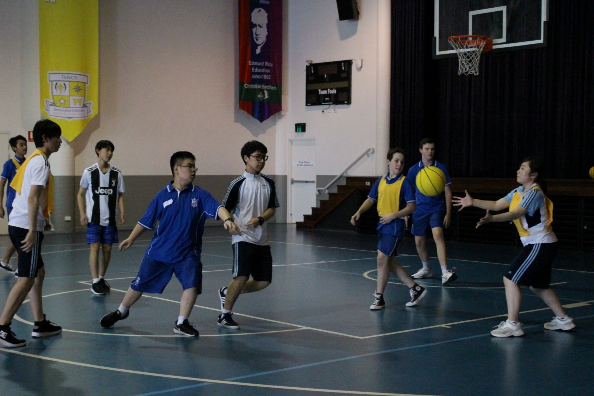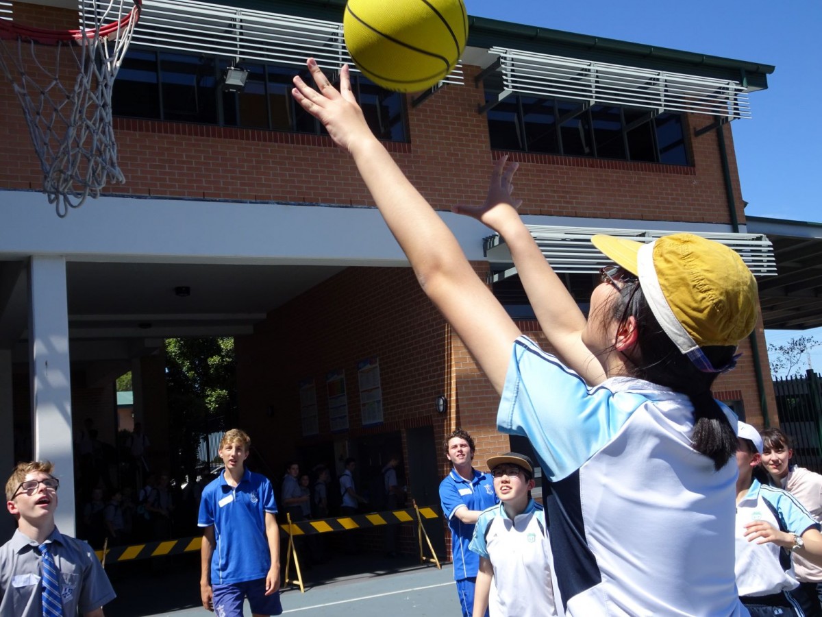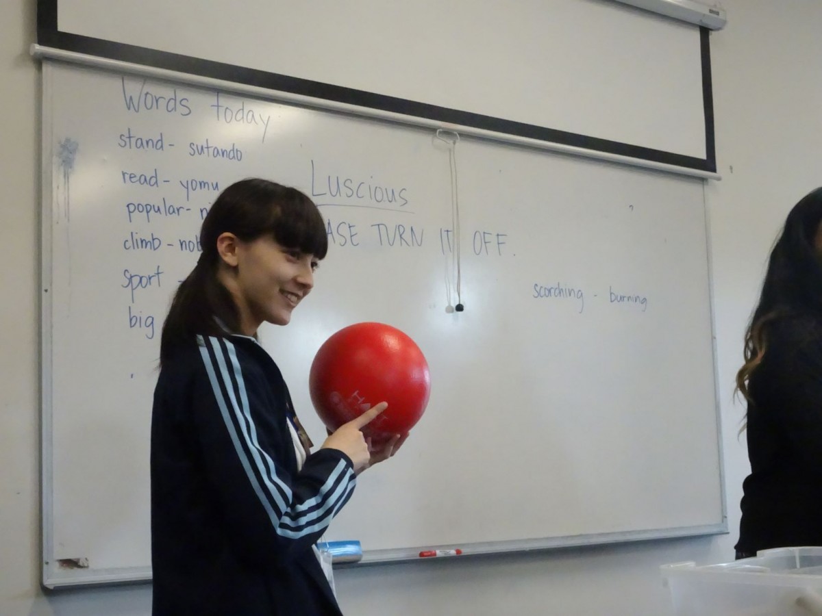 セントドミニクス校でも日本語の授業が行われており、本校の生徒は英語で、セントドミニクス校の生徒は日本語で会話をするためのレクレーションやバスケットボールも行いました。どちらもゲーム形式であり、両校の生徒が一緒に楽しむことができていました。