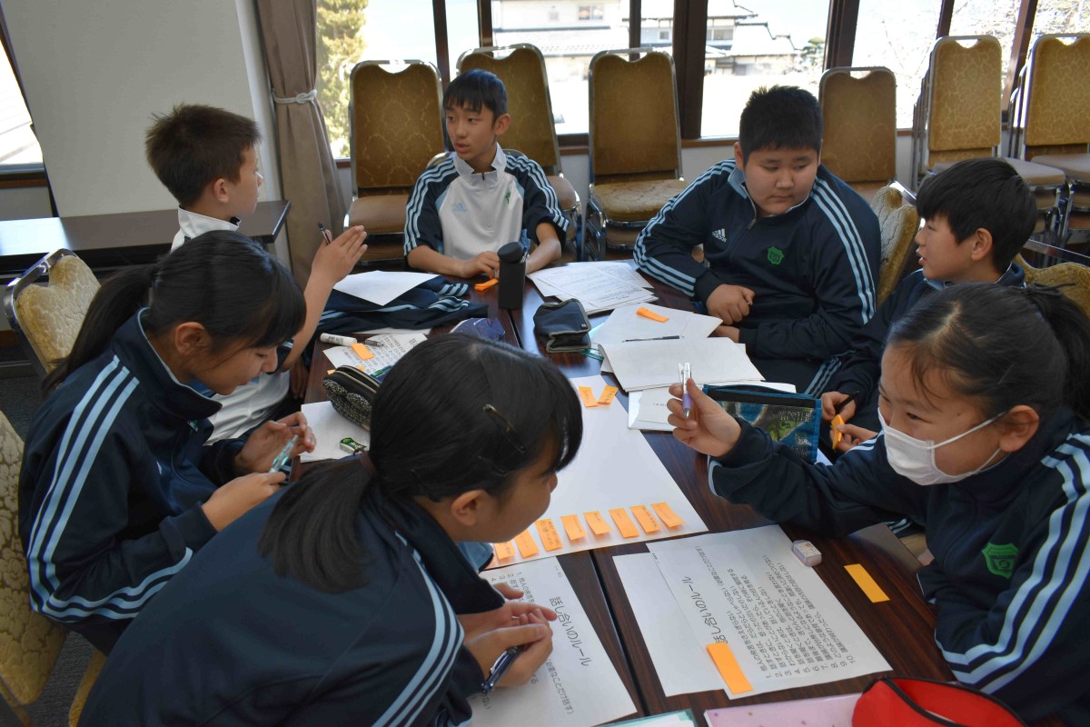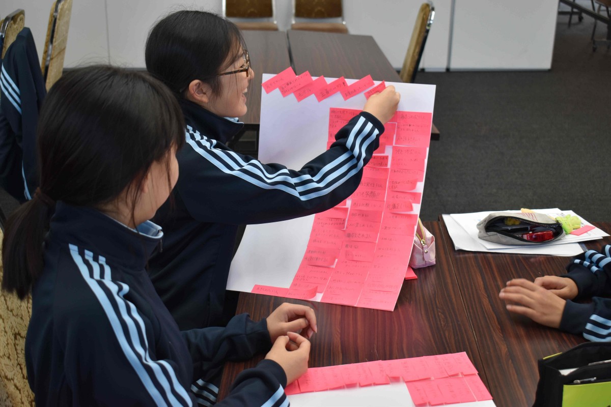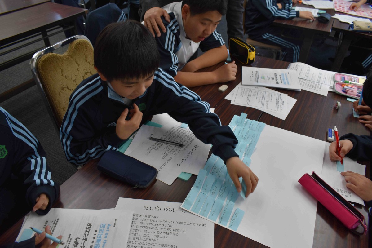 付箋を上手に使いながら、友達の意見を尊重し、話し合いを進めていきます。