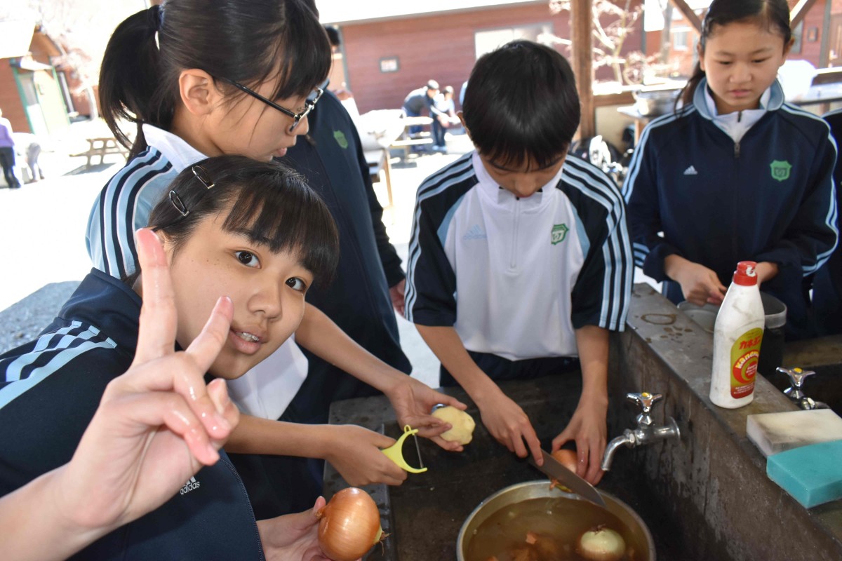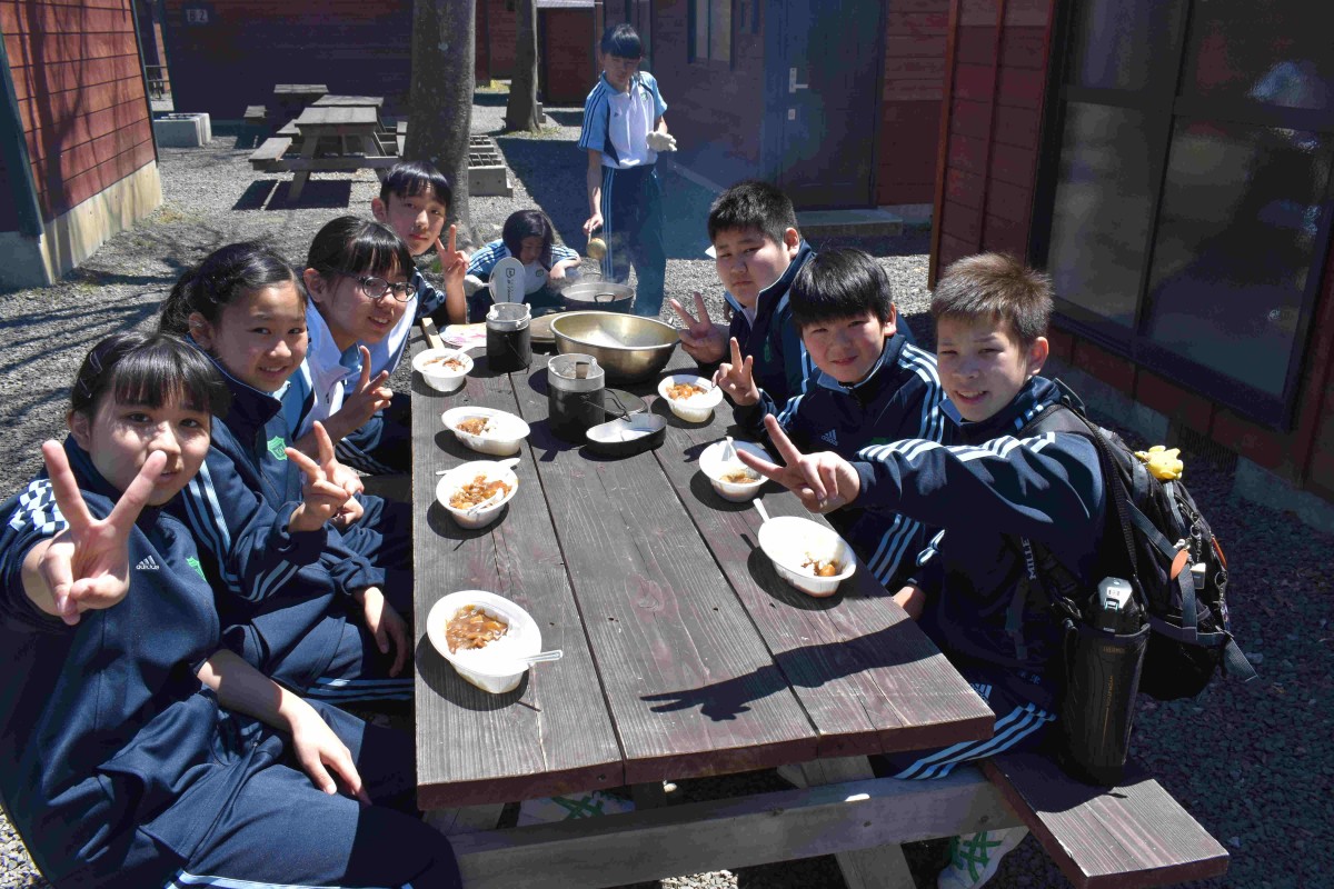 楽しみにしていた飯盒炊爨スタート!初めての火おこしに苦労する班もありましたが、協力してカレーを作りました。