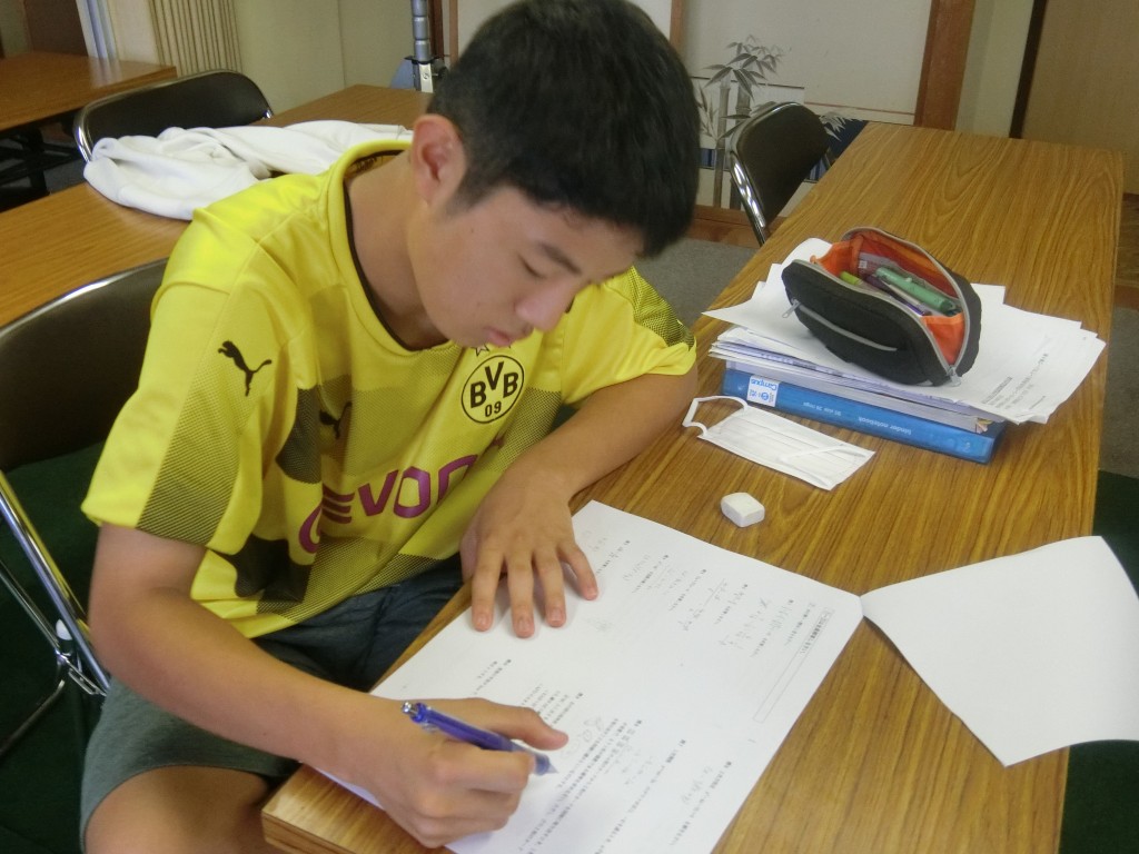 一人ひとりが各教科の課題と夏休みの宿題に取り組みます。皆真剣です。この習慣をこの合宿中に身に付け、夏を乗り切ろう!