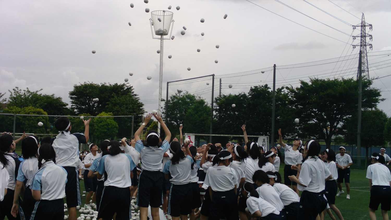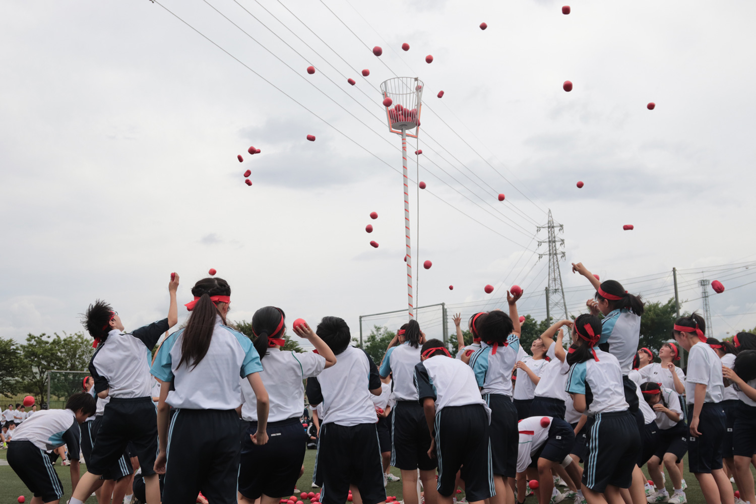 午後の部です。高校生と合同で玉入れを行いました。玉を入れるのに苦戦をしつつも、一生懸命挑戦する姿が見られました。