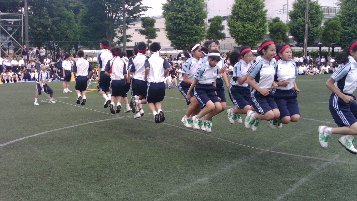 みんなでジャンプ!(大繩)です。各クラスがこれまでの練習の成果を発揮しようと奮闘しています。クラスが一丸となって挑戦しました。