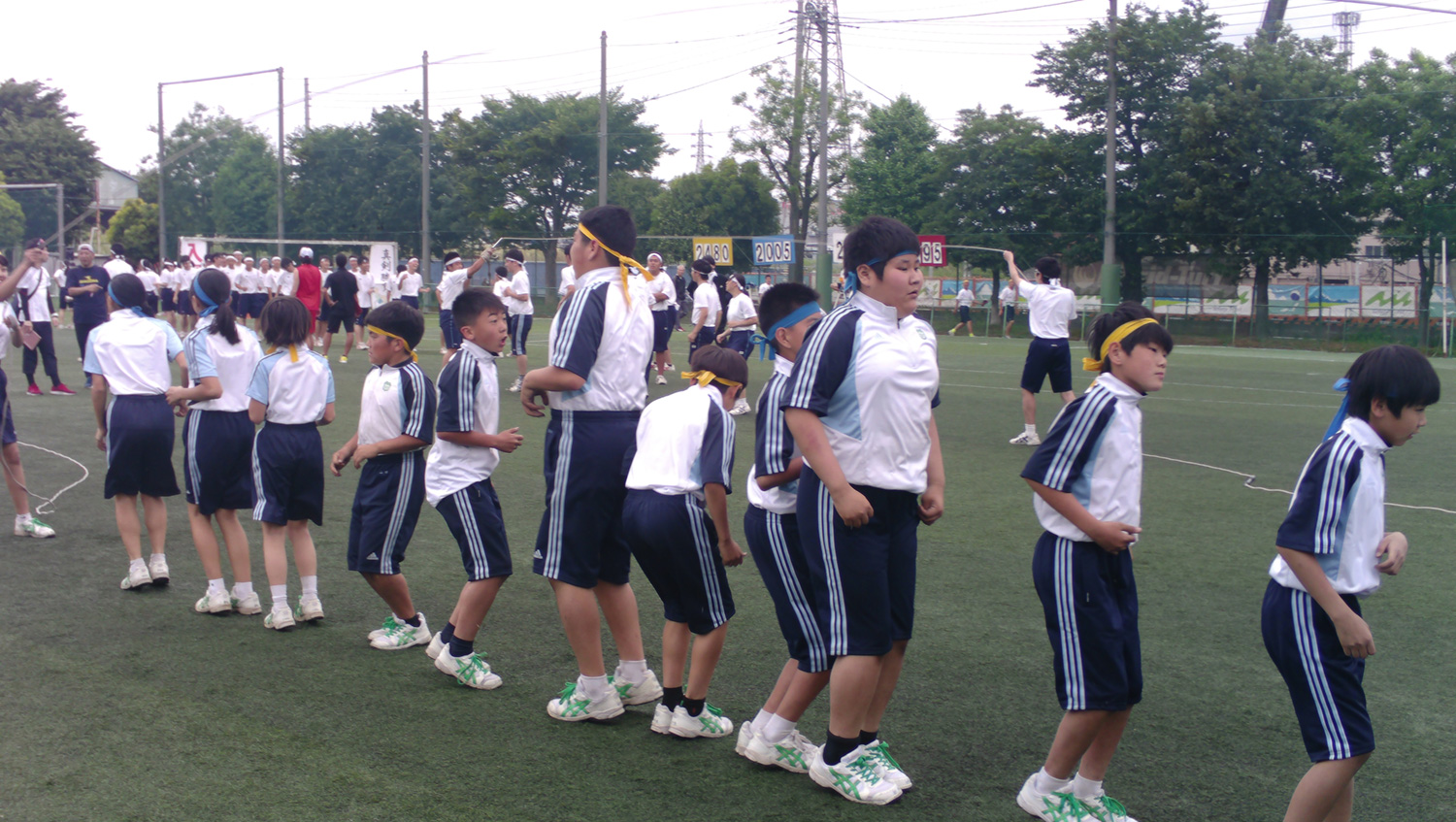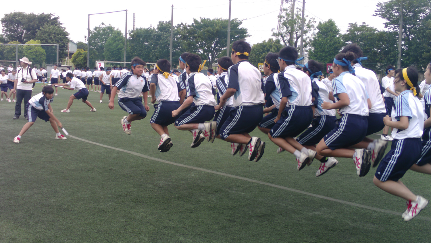 皆の息を合わせて全力で走った百足競走です。気合の入ったかけ声がグラウンドに響き渡りました。