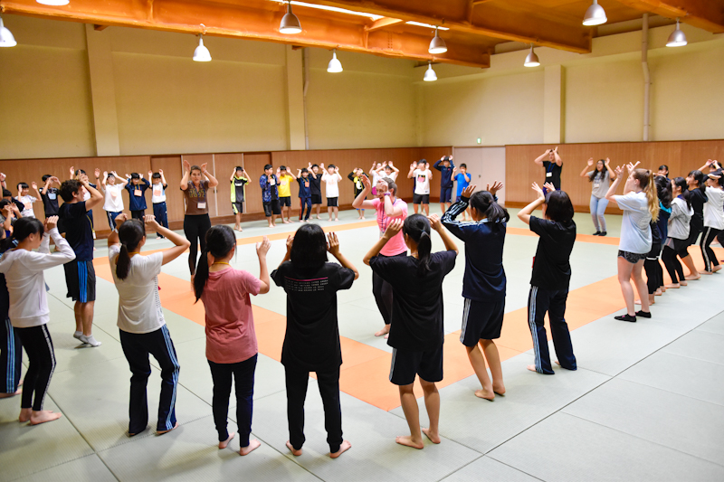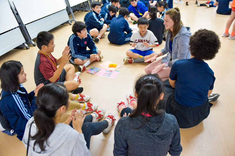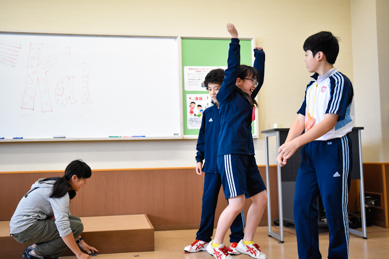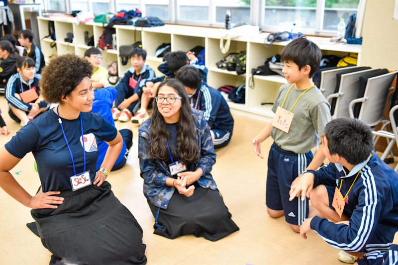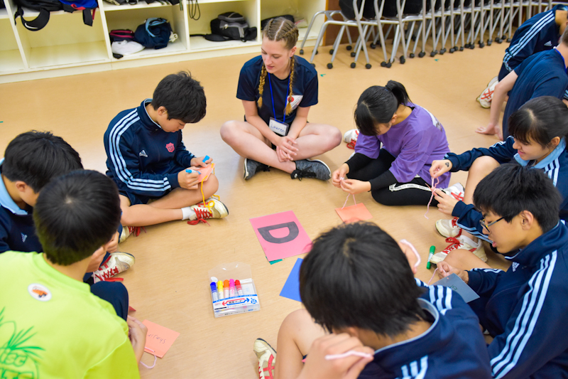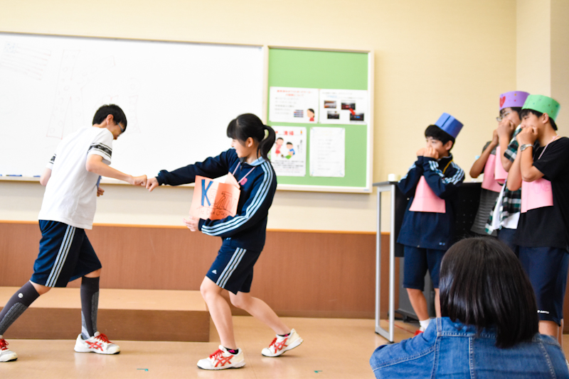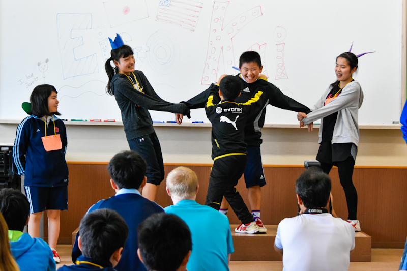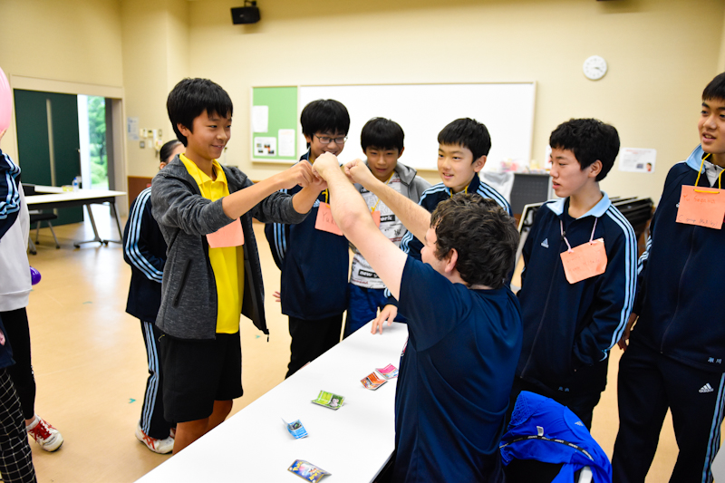 プログラムの合間にはACが用意してくれたミニゲームで盛り上がります。特に「シュウマイジャンケン」「Captain’s Coming」が生徒にも大人気でした!また、休み時間には、ACと交流を図り、今度は日本の遊びをACに教えて一緒に遊んでいました。