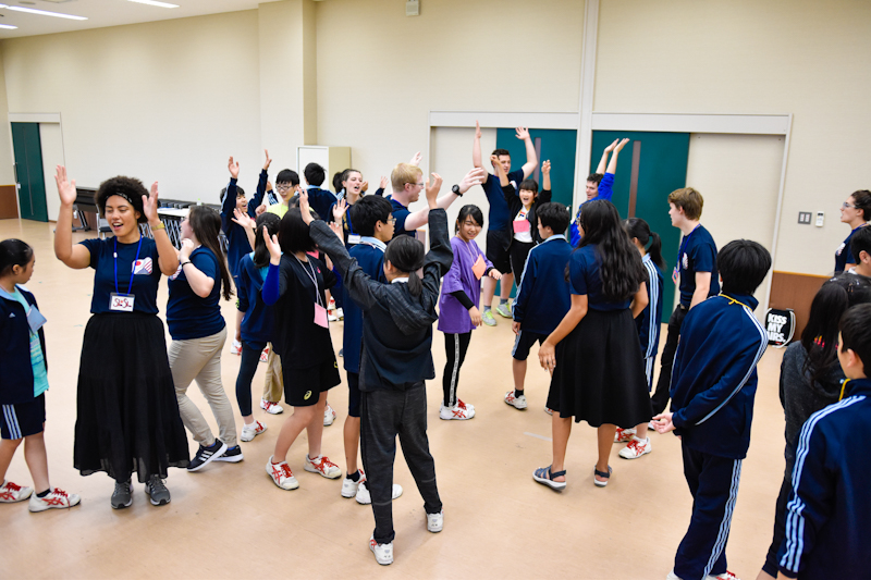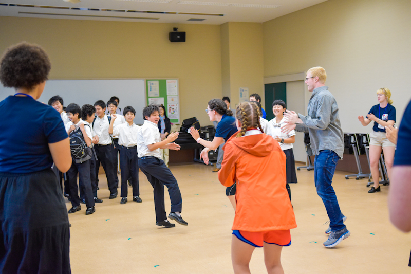 別れの際には、お世話になったAC達とハグを交わす生徒も。3日間という短い期間でしたが、密度の濃い交流があったことを示す何よりの証拠でしょう。ACはバスに乗る直前の時間にダンスゲームをしてくれたり、全員とハイタッチをしてくれたり、最後の最後まで楽しませてくれました!