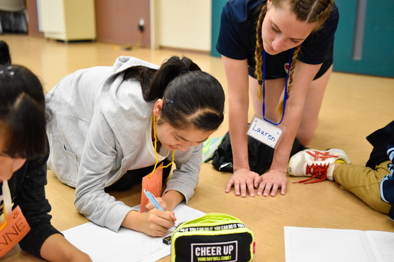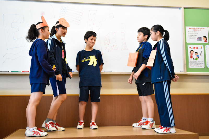 “Camp Skit”(グループごとに英語寸劇を作り発表します)では、初日から作ってきたストーリーも完成し、セリフを覚えたり、中には小道具を作成している班もあり、本格的です!ACからの演技指導も入ります!!こちらも最終日の英語会で発表をします!