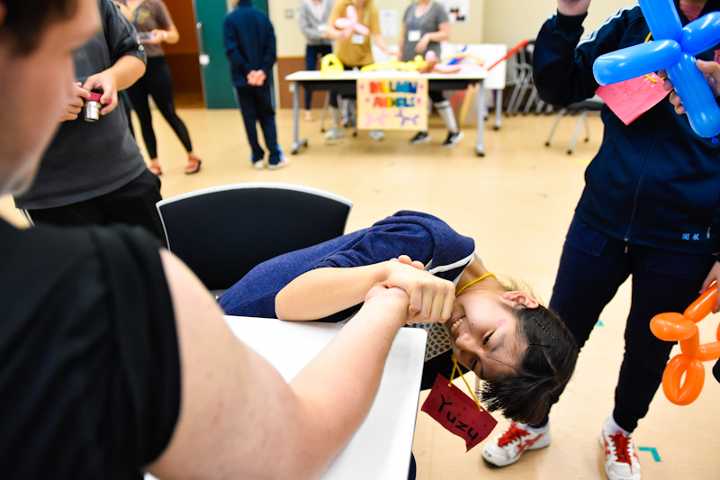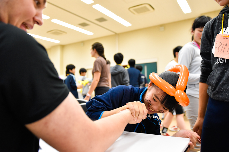 “American Carnival”(アメリカのお祭りをACが再現してくれました。)では、バルーンアニマルを作ってもらったり、フェイスペイント、アームレスリング、的当てなど様々なゲームを楽しんでいました。