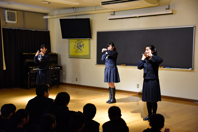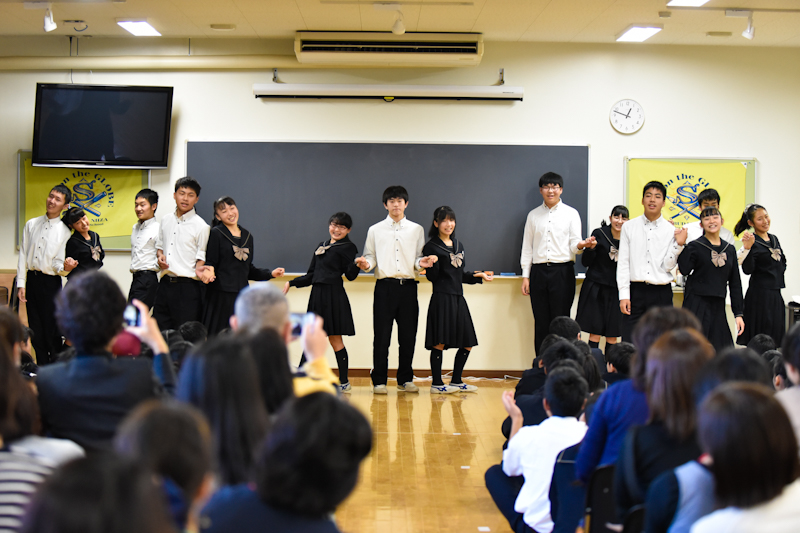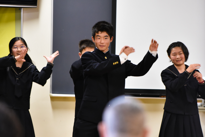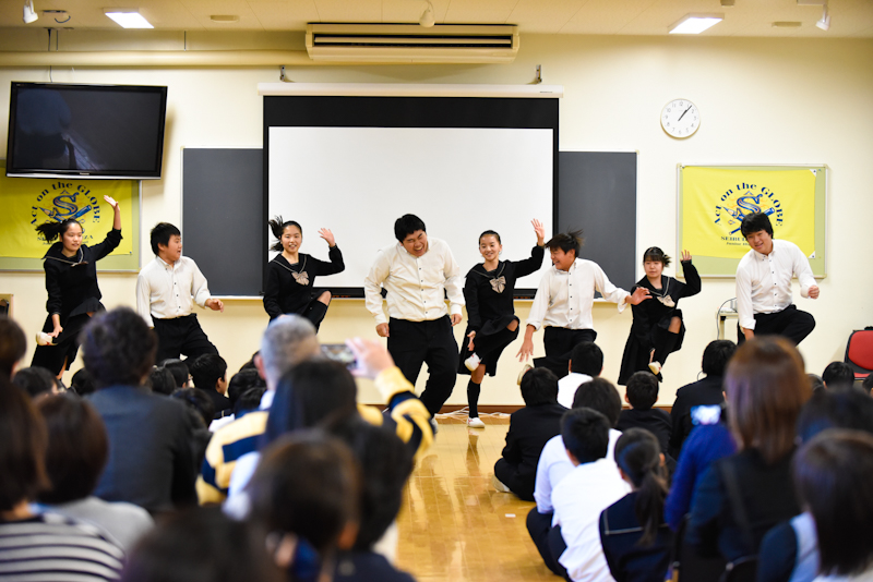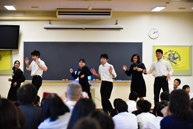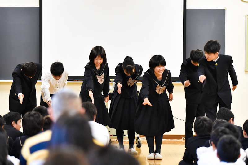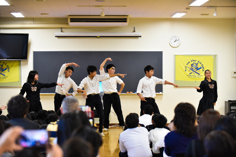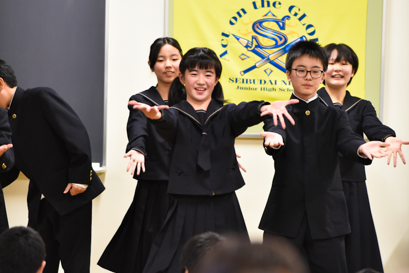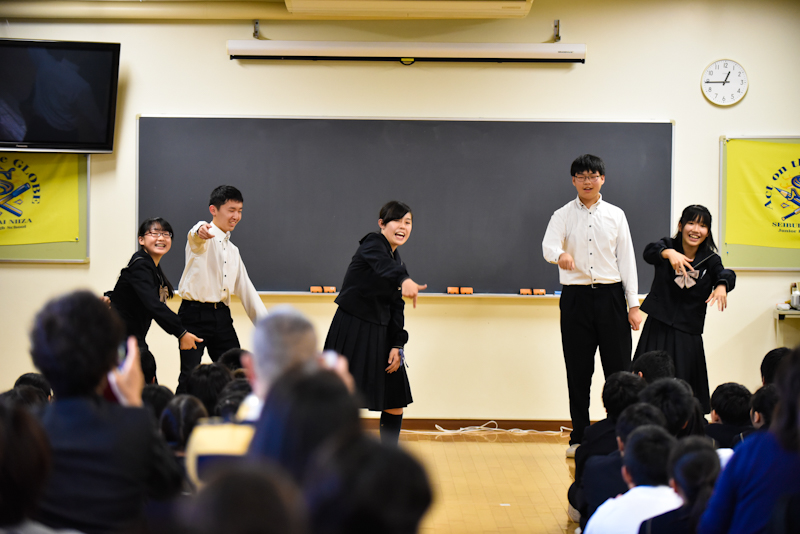 「西武台あるある」と「バカッコイイ」をテーマに発表を行いました。BGM付きの西武台体操は見ごたえがありました。